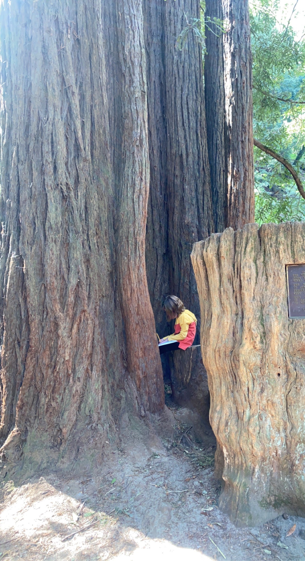 The campers took their newly decorated nature journals and recorded some observations about the trees on our walk. We recorded details with some help with labeling. Campers went and sat under a tree, sketched it out and then labeled their tree as evergreen or deciduous. We also talked a bit about temperate deciduous forests (where we live) and tropical deciduous forests. Temperate forests change with the pattern of the temperature, while tropical forests loose their leaves depending on rainfall.
